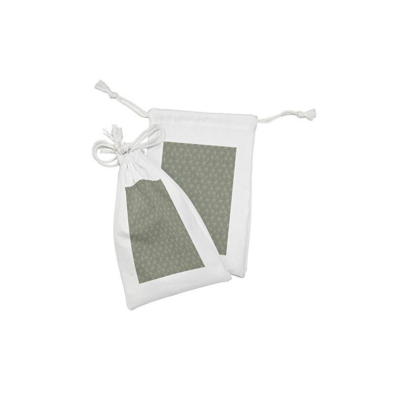 Ambesonne Abstract Fabric Pouch Set of 2, Autumn Leaves in the Shapes of Stars Striped Botanical Illustrations, Small Drawstring Bag for Toiletries Masks and Favors, 9" x 6", Reseda Green and Tan