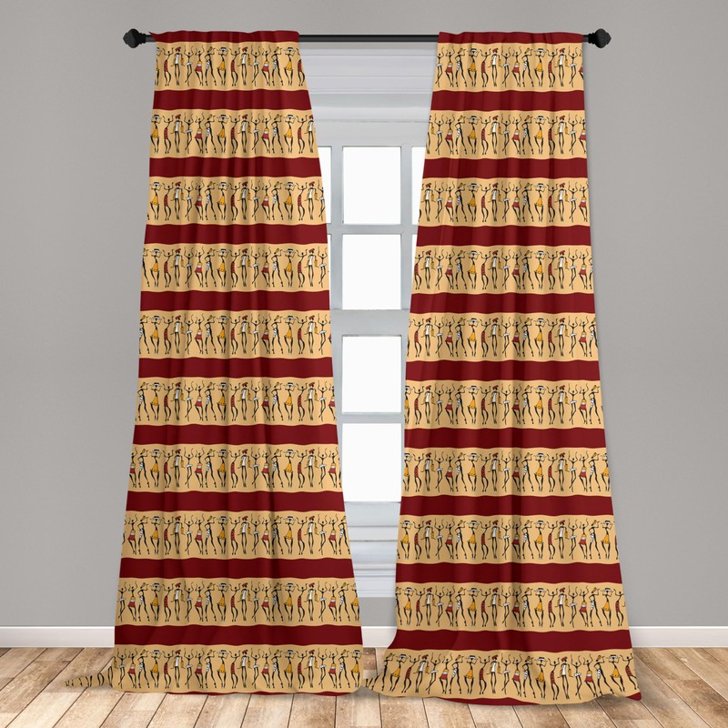 Ambesonne African Window Curtains, Native Indigenous People Different Poses Culture Borders, Lightweight Decor 2-Panel Set with Rod Pocket, Pair of - 28" x 63", Black Peach
