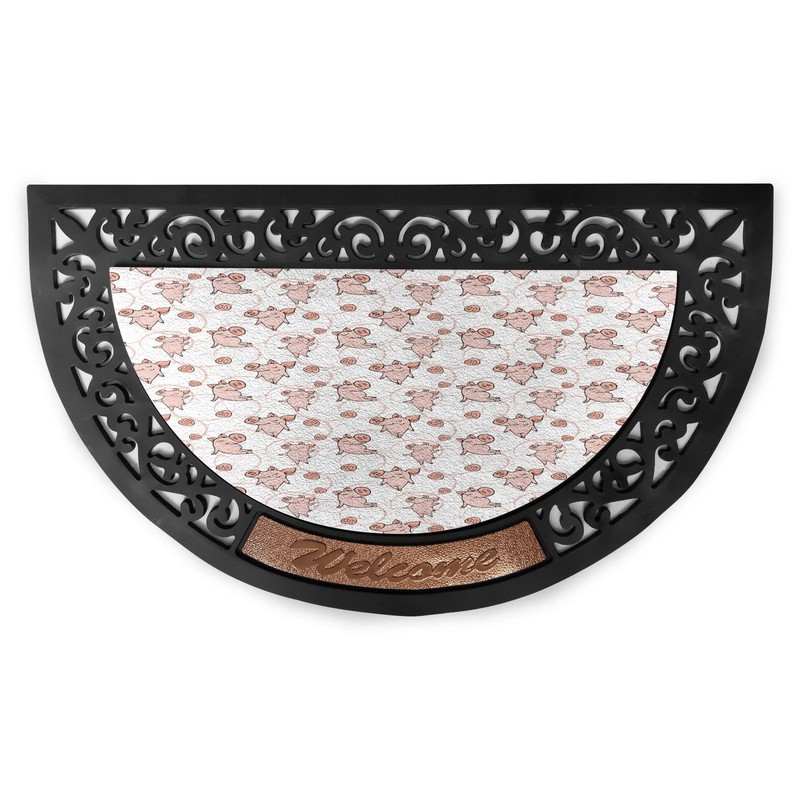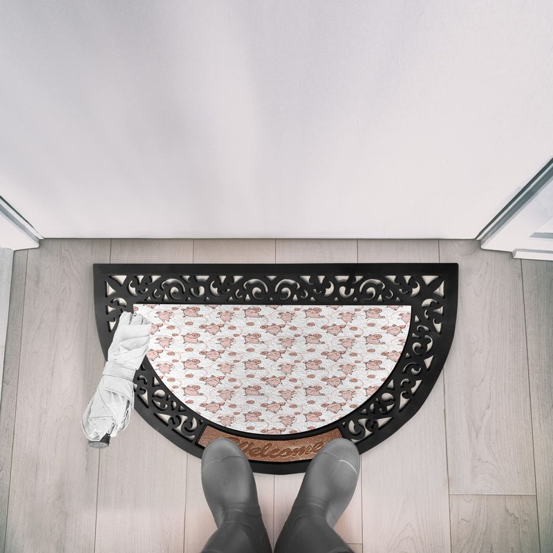 Ambesonne Animal Art Doormat, Cartoon Style Piglets Nose Marks and Circular Shapes on Plain Backdrop, Semi Circle Entryway Welcome Mat for Front & Backard 2 Pieces, 19.6" x 31.4", White and Blush