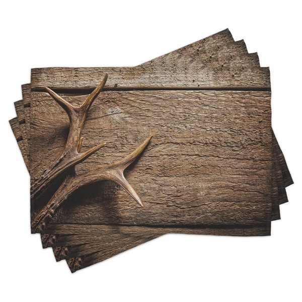 Ambesonne Antlers Place Mats Set of 8, Deer Antlers on Wood Table Rustic Texture Surface Hunting Season Fall Gathering Art, Washable Fabric Placemats for Dining Table, Placemat 8 pcs, Umber