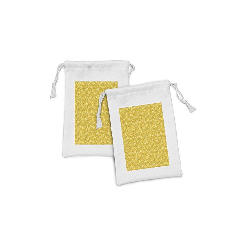 Ambesonne Autumn Fabric Pouch Set of 2, Fall Branches in Abstract Style of Tulip Bouquets Essence Floral Doodle, Small Drawstring Bag for Toiletries Masks and Favors, 9" x 6", Earth Yellow and White