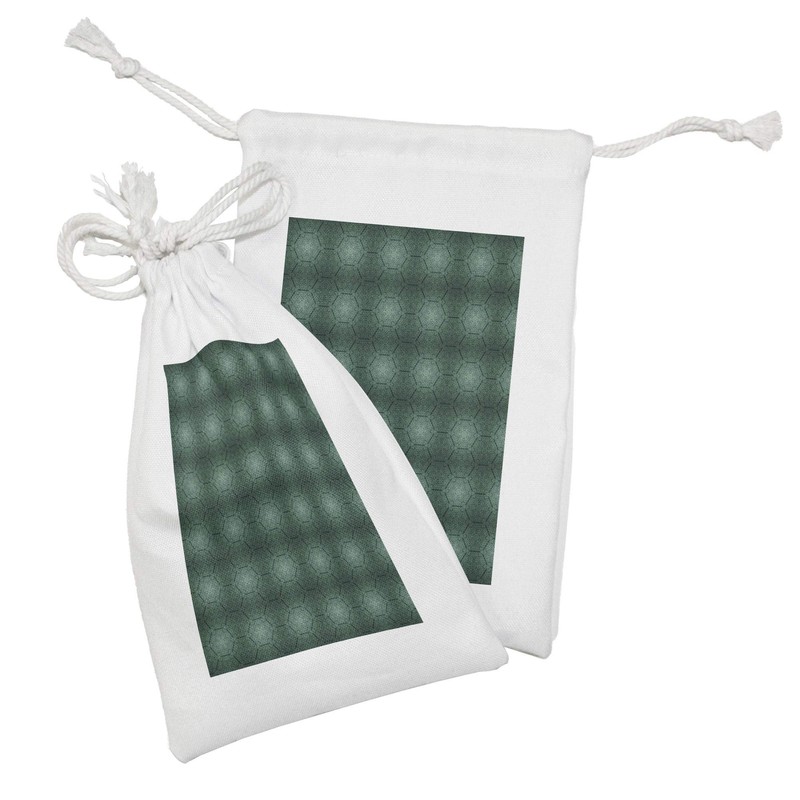 Ambesonne Baroque Fabric Pouch Set of 2, Monochrome Style Natural Streaks Drawn by Hand, Small Drawstring Bag for Toiletries Masks and Favors, 9" x 6", Hunter Green Mint Green