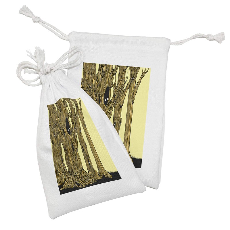 Ambesonne Dark Forest Fabric Pouch Set of 2, Illustration of Grove of Spooky Trees in Woodcut Inspired Style, Small Drawstring Bag for Toiletries Masks and Favors, 9" x 6", Yellow and Charcoal Grey