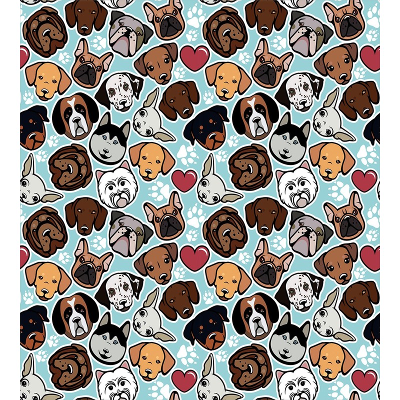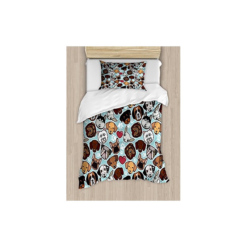 Ambesonne Dog Lover Duvet Cover Set, Canine Breeds Bulldog Chihuahua Siberians and Retriever Love Heart Paw Prints, Decorative 2 Piece Bedding Set with 1 Pillow Sham, Twin Size, Pale Blue
