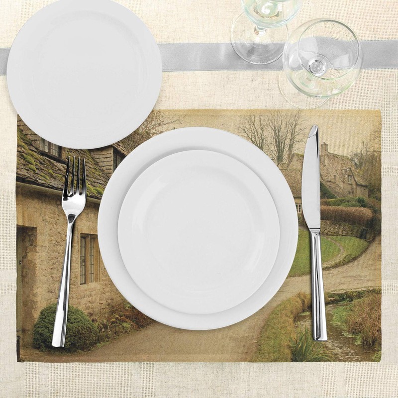 Ambesonne European Place Mats Set of 4, British Town with Stone Houses Retro ...