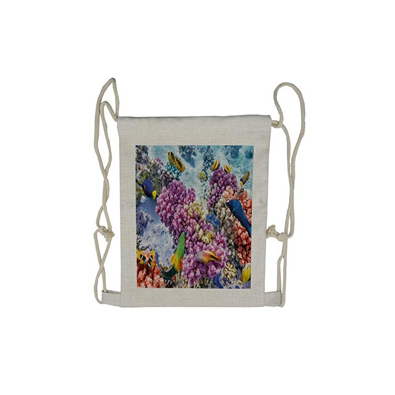 Ambesonne Fish Drawstring Backpack, Marine Life Sea, Sackpack Bag