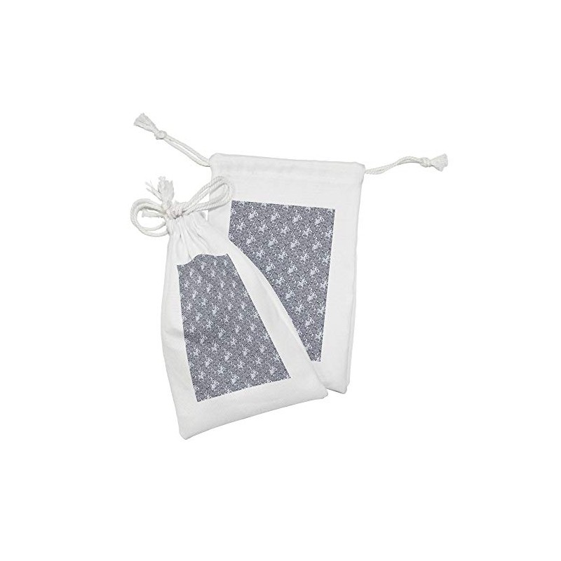 Ambesonne Floral Fabric Pouch Set of 2, Detailed Stripey Drawings of Bindweed Flower Bells, Small Drawstring Bag for Toiletries Masks and Favors, 9" x 6", Blue Grey Night Blue