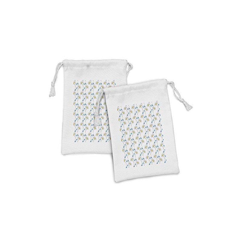 Ambesonne Flower Fabric Pouch Set of 2, Daisy Blooms with Paintbrush Effects Gardening Spring Botanical Print, Small Drawstring Bag for Toiletries Masks and Favors, 9" x 6", Azure Blue Yellow White