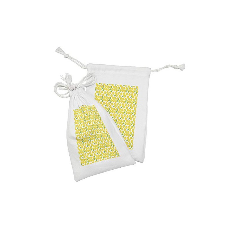 Ambesonne Fruit Fabric Pouch Set of 2, Simple Orange Motifs Illustration Repeating Citrus Plants Geometric Elements, Small Drawstring Bag for Toiletries Masks and Favors, 9" x 6", Yellow Green White