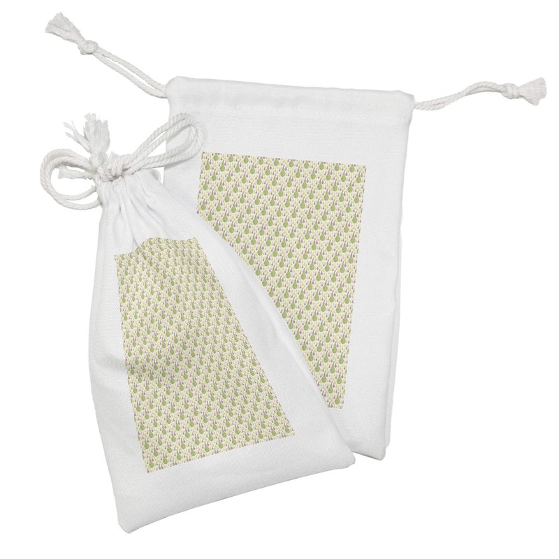 Ambesonne Fruit Fabric Pouch Set of 2, Zentangle Patterned Pears and Silhouettes Pop Kitchen, Small Drawstring Bag for Toiletries Masks and Favors, 9" x 6", Pastel Yellow Pale Green