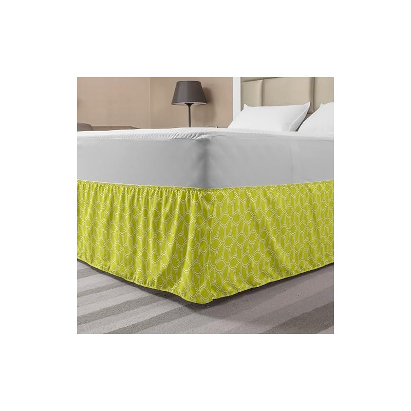 Ambesonne Geometric Elastic Bed Skirt, Abstract Flower Silhouettes with Hand Drawn Monochrome Design Print, Wrap Around Fabric Bedskirt Dust Ruffle for Bedroom, Queen, Yellow Green and White