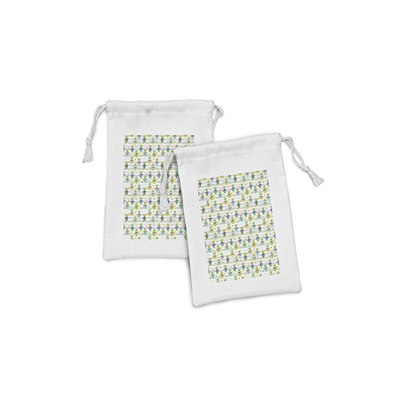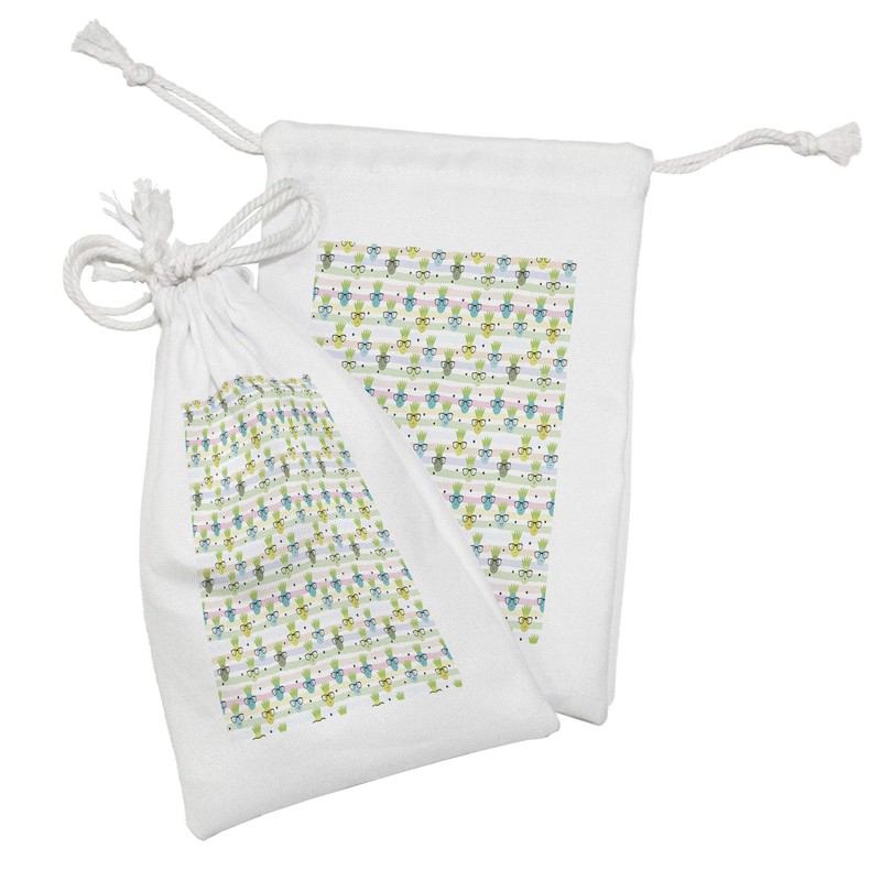 Ambesonne Hipster Fabric Pouch Set of 2, Doodle Pineapple Pattern with Glasses Nerd Fruits Healthy Life Pastel Print, Small Drawstring Bag for Toiletries Masks and Favors, 9" x 6", Multicolour