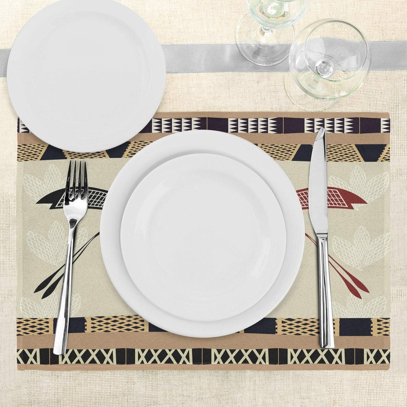 Ambesonne Hummingbird Place Mats Set of 4, Image of Branches and Hummingbirds Geometric Pattern Traditional Tribal Art, Washable Fabric Placemats for Dining Table, Standard Size, Black Brown
