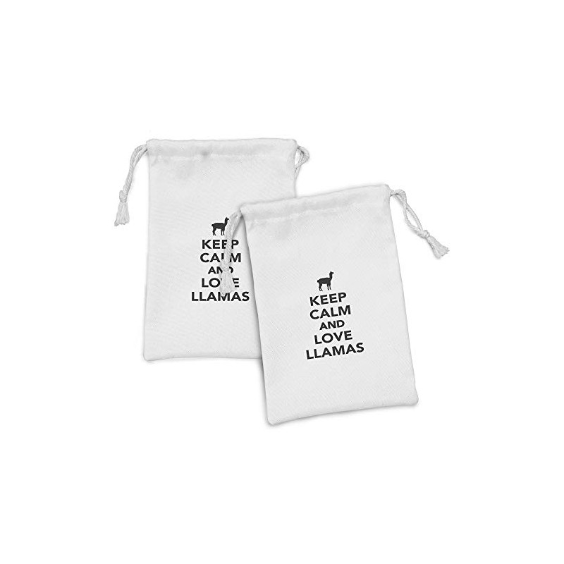 Ambesonne Llama Fabric Pouch Set of 2, Monochrome Pop Culture Phrase with Llama Silhouette South American Wildlife, Small Drawstring Bag for Toiletries Masks and Favors, 9" x 6", Charcoal Grey White