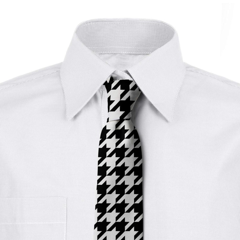 Ambesonne Men's Tie, Houndstooth Inspired Design, 3.7", Black Charcoal and White