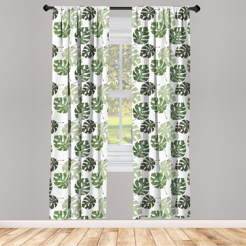 Ambesonne Monstera Window Curtains Pack of 2, Tropical Jungle Foliage Hawaiian Nature Growth Sketchy Leaves Environment Eco, Lightweight Set with Rod Pocket, 4 Panels of - 28" x 84", Green and White
