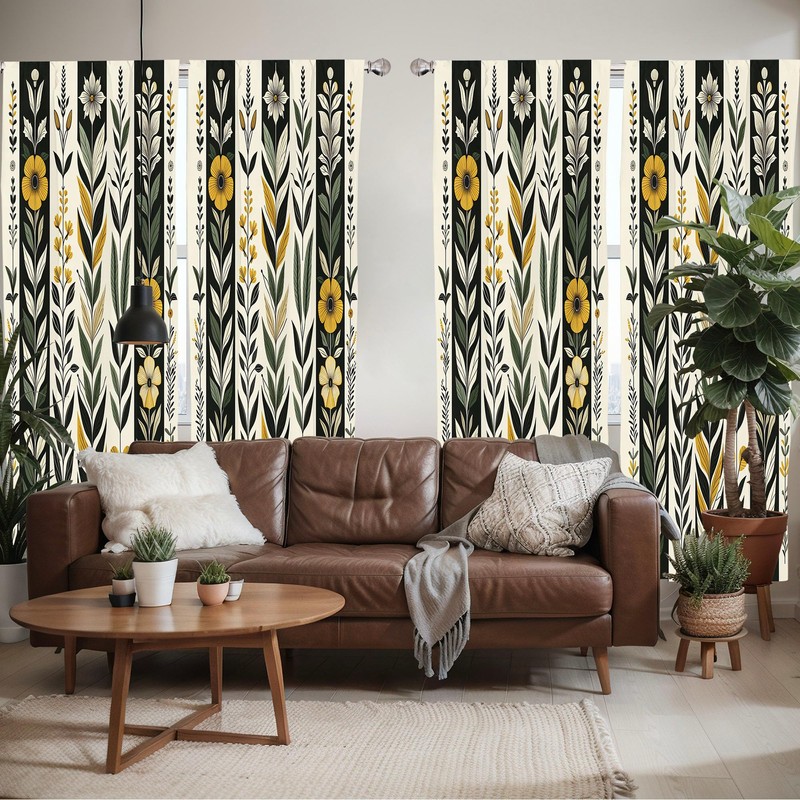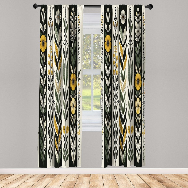 Ambesonne Nature Boho Window Curtains Pack of 2, Urban Jungle Theme Dreamy Leaves and Flowery Petals and Stripes, Lightweight Set with Rod Pocket, 4 Panels of - 28" x 84", Earth Yellow Laurel Green