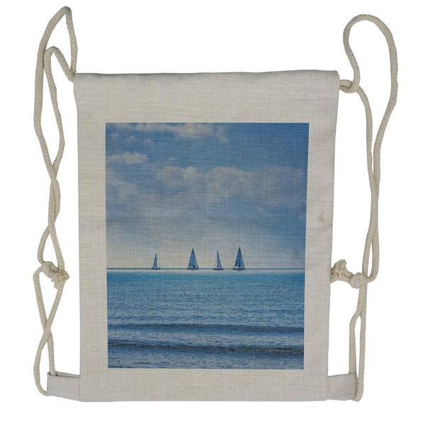 Ambesonne Nautical Drawstring Backpack, Sailing Boat on Ocean, Sackpack Bag