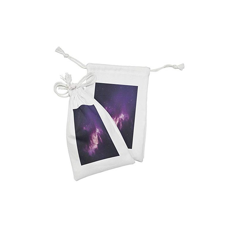 Ambesonne Outer Space Fabric Pouch Set of 2, Stars in the Dark Night Sky Comet Constellation Deep Space Years Themed Image, Small Drawstring Bag for Toiletries Masks and Favors, 9" x 6", Purple