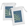 Ambesonne Sea Monster Fabric Pouch Set of 2, Long Curving Tentacles of an Octopus Sea Creature, Small Drawstring Bag for Toiletries Masks and Favors, 9" x 6", Almond Green Sea Blue