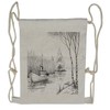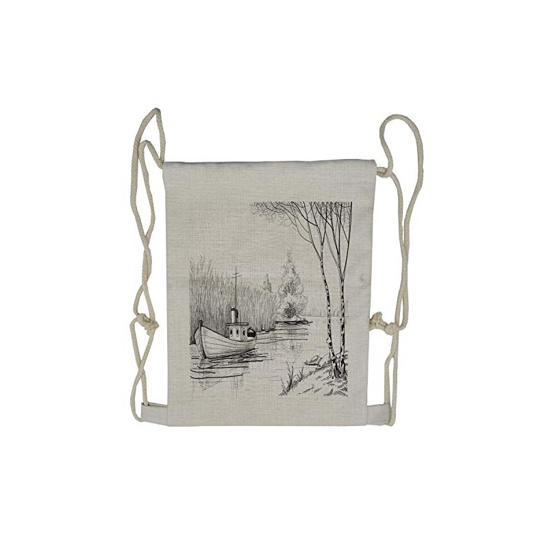 Ambesonne Sketchy Drawstring Backpack, Black White Boat River, Sackpack Bag