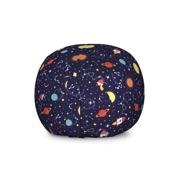 Ambesonne Spaceship Storage Toy Bag Chair, Cosmic Themed Pattern of Flying Spacecraft in Outer Space Stars Planets, Stuffed Animal Organizer Washable Bag, Large Size, Indigo