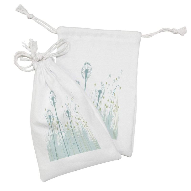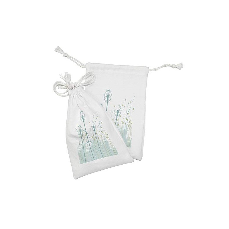 Ambesonne Spring Fabric Pouch Set of 2, Silhouette Dandelion Floral Foliage Seasonal Blooms Botany Eco Illustration, Small Drawstring Bag for Toiletries Masks and Favors, 9" x 6", Khaki Almond Green