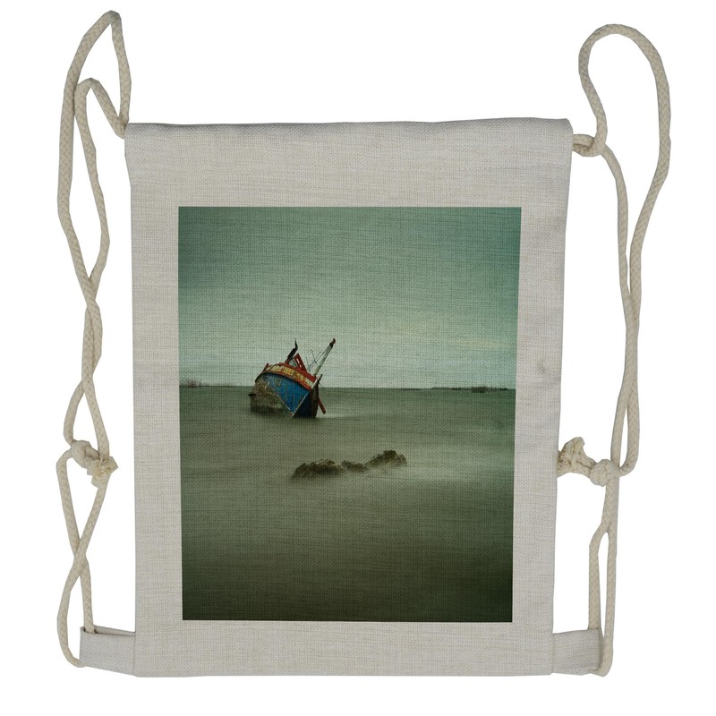 Ambesonne Vintage Drawstring Backpack, Abandoned Fishing Boat, Sackpack Bag