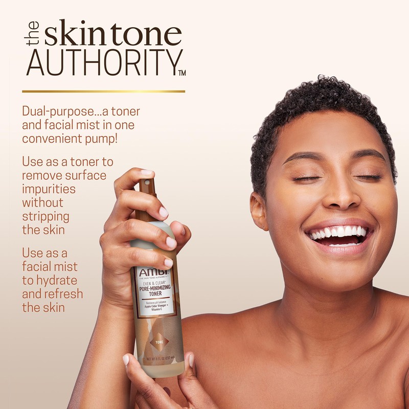 Ambi Even & Clear Intense Clarifying Toner is a dual-purpose item: a Clarifying Toner (which removes surface impurities without stripping the skin) and a Facial Mist (which hydrates and refreshes the skin). It is specifically formulated with Licorice Root Extract which helps even skin tone and antioxidant-rich Vitamin C which helps support skin rejuvenation and adds glow to skin. It also includes Apple Cider Vinegar which removes oil, minimizes, pores and helps balance skin's pH.