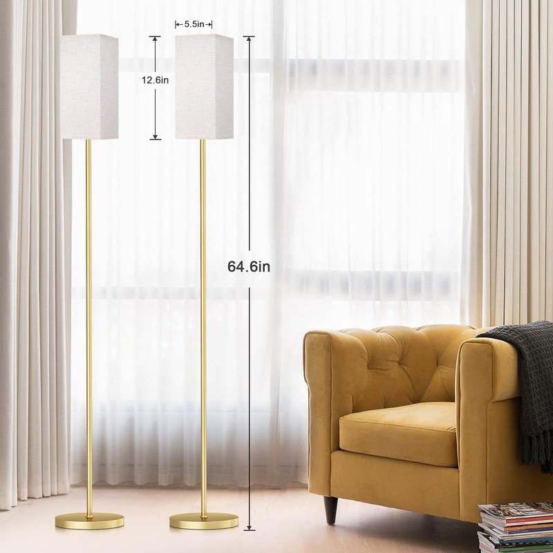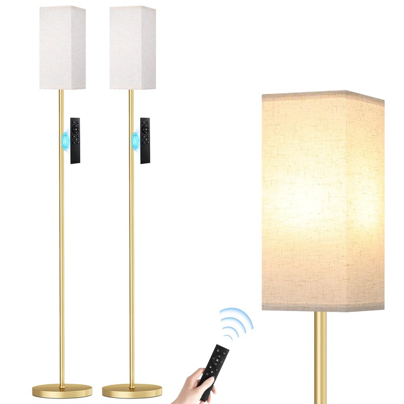 Ambimall 2 Packs Remote Control Floor Lamp, Stepless Dimmable, 64 Inches Tall, Include 9W Bulb, Standing Lamp for Living Room Bedroom Office (Light Beige & Gold)