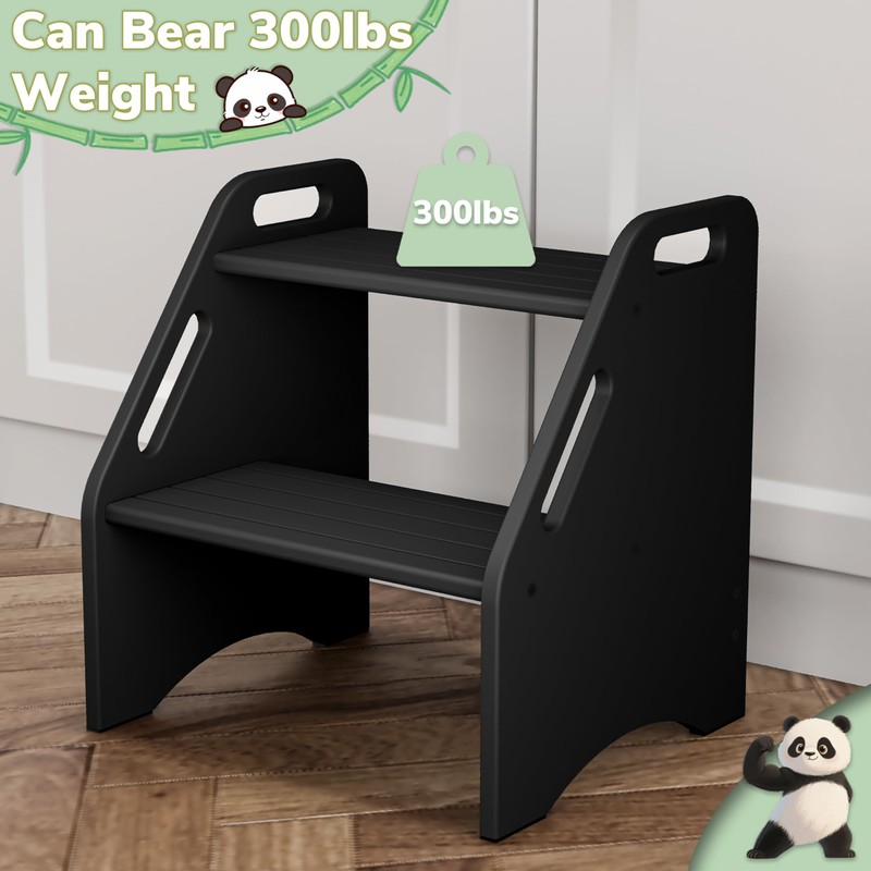 - EASILY WITHSTANDS 300 LBS OF ADULT: AMBIRD step stools for kids can withstand an adult standing on it weighing 300 pounds, you do not need to worry about the step stool breaking; We selected the excellent natural bamboo to make the kids step stool, compared to other wood more sturdy, while the bamboo polishing treatment, bamboo thickness of 0.6 inches, for the safety of children to provide security