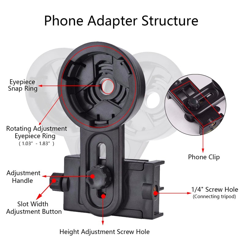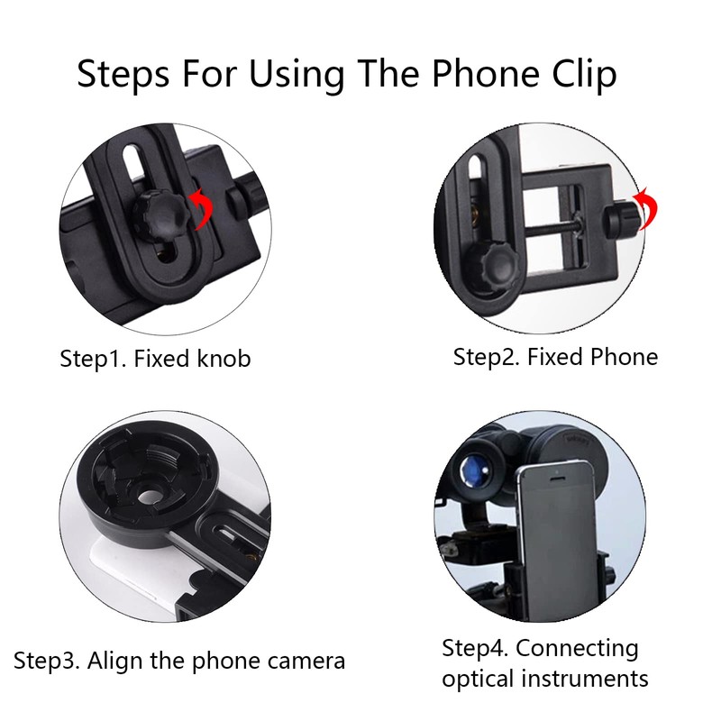 - Telescope Phone Adapter - Easily connect your phone to optical instruments (binoculars, monoculars, spotting scopes and microscopes, etc.), you can take stable and clear pictures or videos