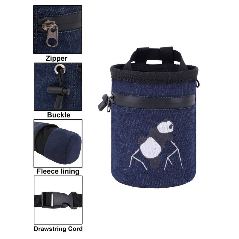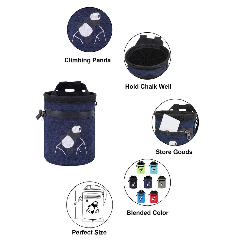 AMC Rock Climbing Panda Compact Chalk Bag with Adjustable Belt, Denim Blue