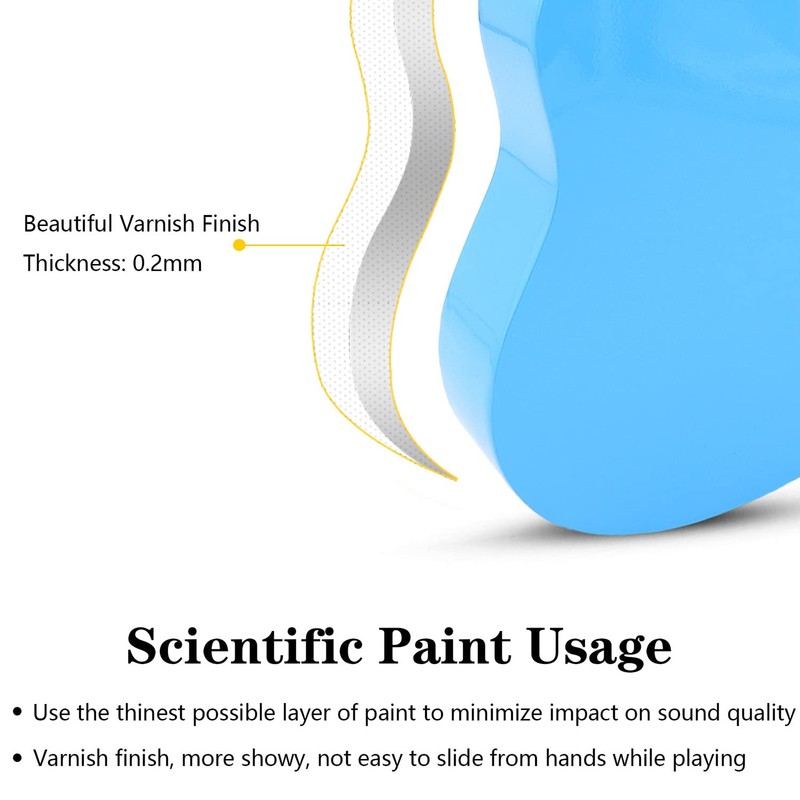 • ✅ Shiny & Colorful Design: Each ukulele undergoes a varnish treatment, glistening beautifully under lights. Not compromising on quality, we meticulously select and ensure perfection. Choose from up to 13 vibrant colors to keep your sessions lively and engaging.