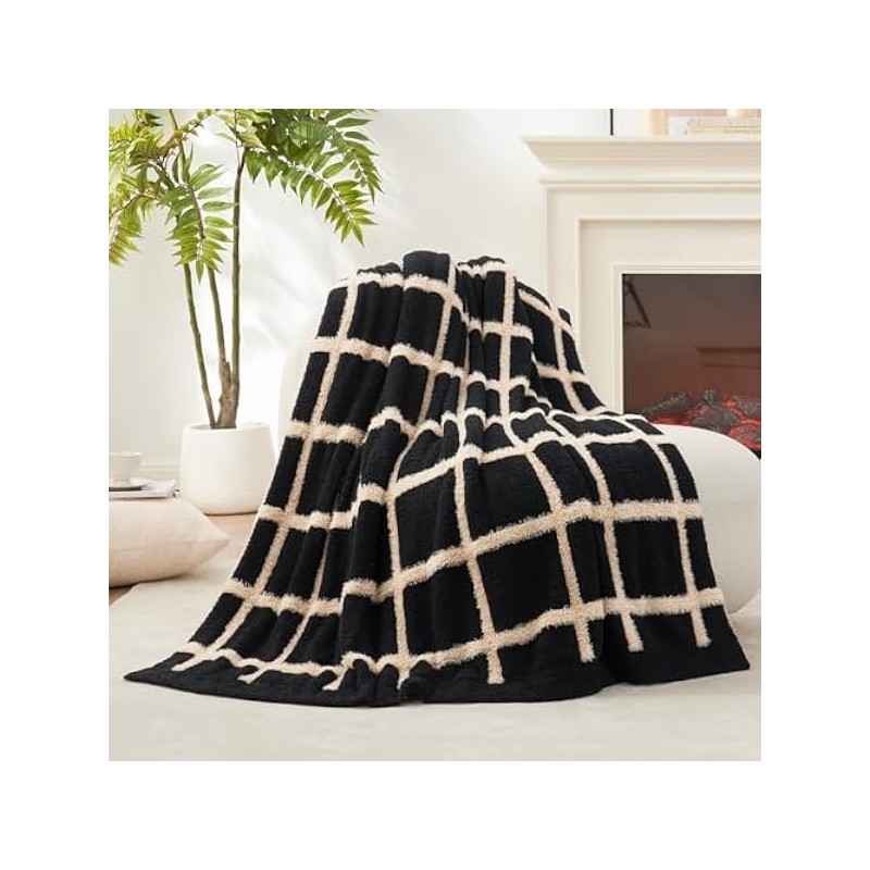 Amélie Home Checkered Throw Blanket for Couch, Reversible Super Soft Warm Blankets Cozy Black Throw Blanket Fuzzy Plush Throws for Sofa Bed Living Room, 50" x 60", Plaid Black