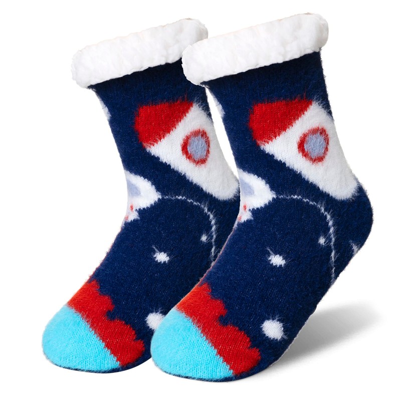 - COZY & FLUFFY SLIPPER SOCKS FOR KIDS: Crafted from high-quality, breathable polyester fabric and lined with a comfy, fuzzy interior, these slipper socks for boys provide a relaxing feel that's both breathable and warm. They're the perfect plush cabin socks for little boys, suitable for everyday activities and sleep during the cooler months.
