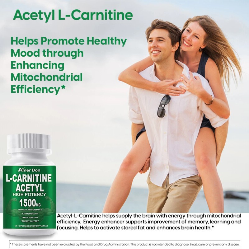 The main function: Acetyl L-Carnitine Helps Promote Healthy Mood through Enhancing Mitochondrial Efficiency Acetyl-L-Carnitine helps supply the brain with energy through mitochondrial efficiency. Energy enhancer supports improvement of memory, learning and focusing.Helps to activate stored fat and enhances brain health.