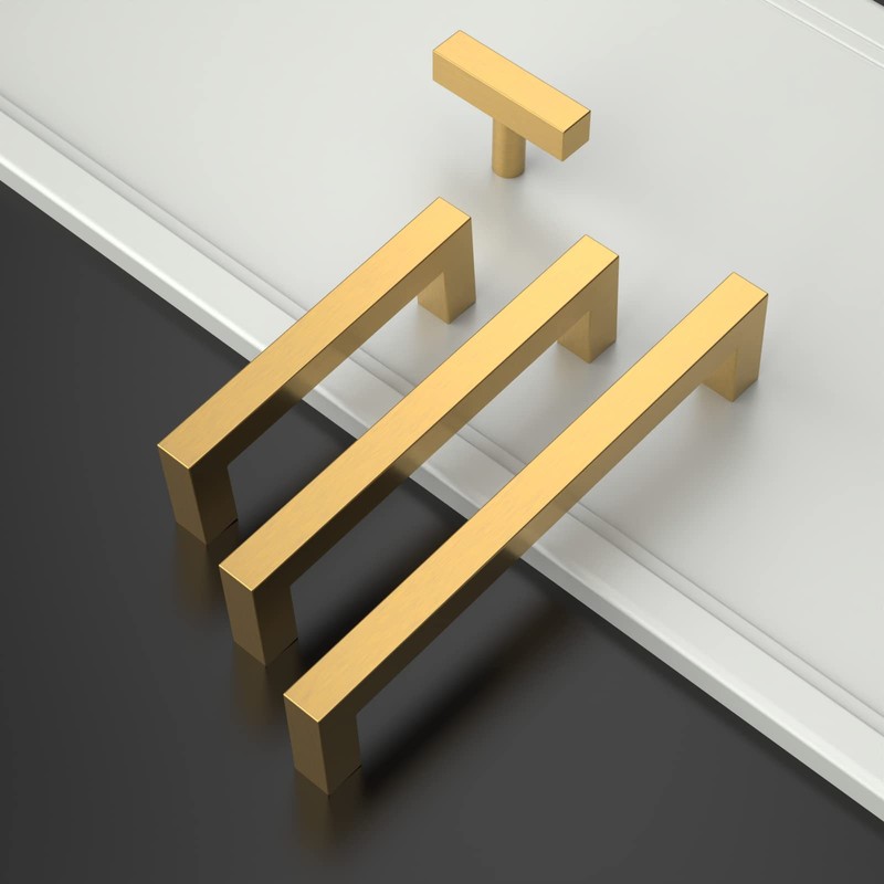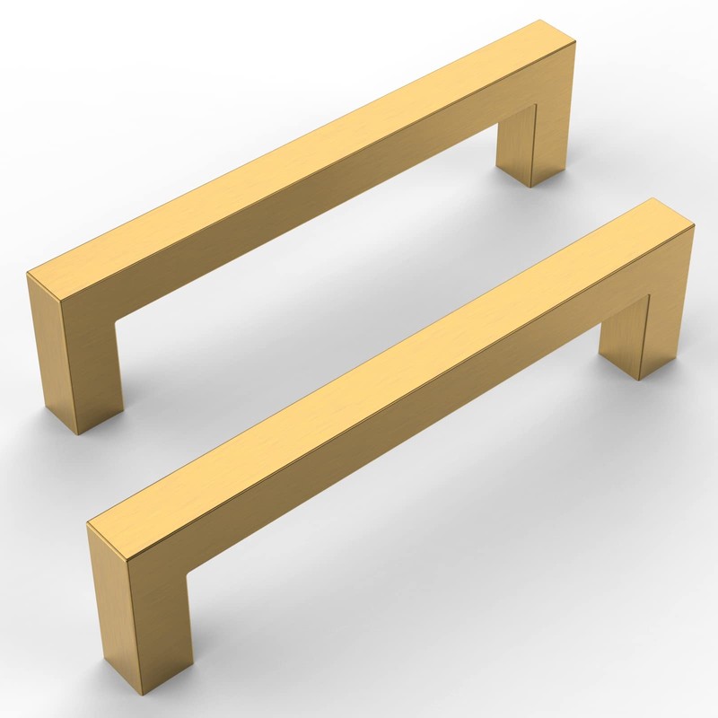 Amerdeco 10 Pack Brushed Gold Cabinet Pulls 5 Inch(128mm) Hole Centers Kitchen Cabinet Handles Cabinet Hardware Cupboard Handles Square Drawer Pulls SH0004