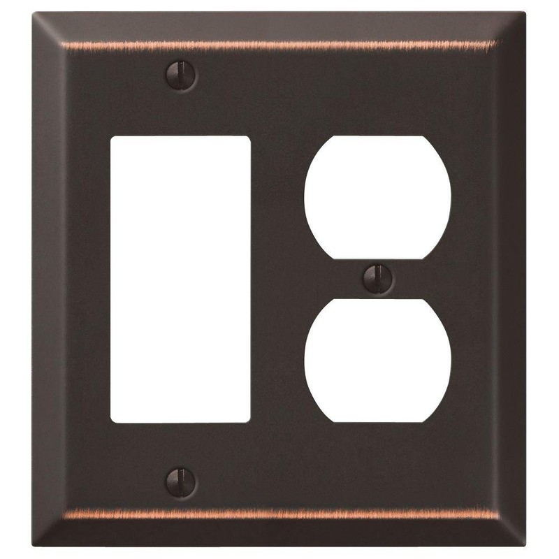 - PRODUCT DETAILS: Size: 1 Rocker / 1 Duplex Outlet Wallplate | Style: Mid-Century Modern | Material: Steel | Finish: Aged Bronze | Dimensions: 0.25 (L) x 4.5625 (W) x 4.9375 (H) | UL Listed, Screws and Mounting Hardware Included