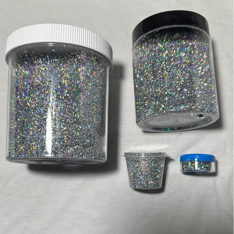 The features of this flake include its holographic (rainbow, oil slick) effect, making it stand out from other paint additives. This item is great for automotive enthusiasts looking to enhance their ride's appearance. Make your vehicle truly unique with this Silver Holographic Metal Flake, perfect for any DIY project.