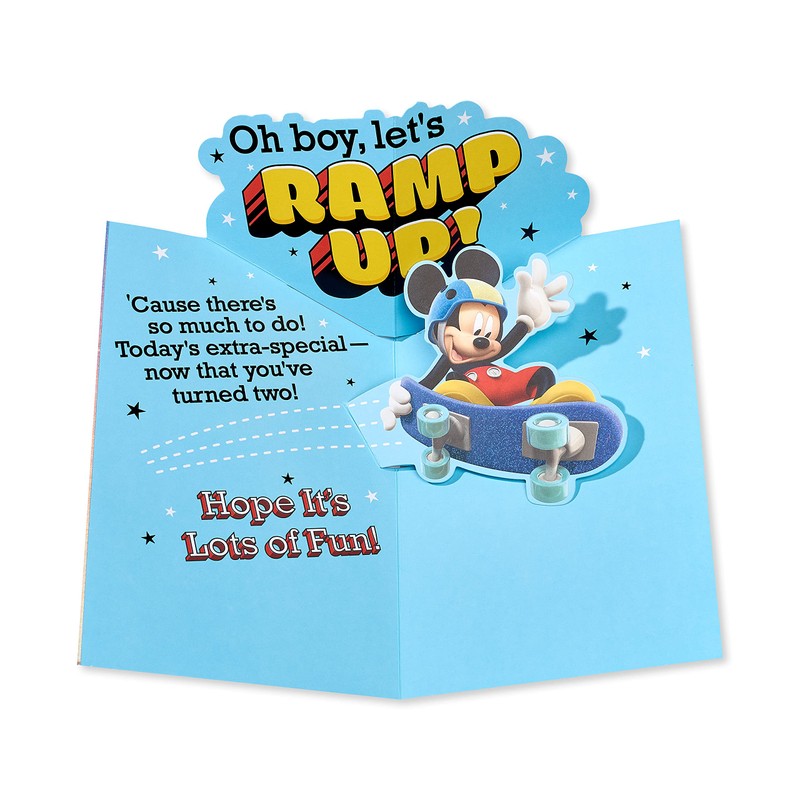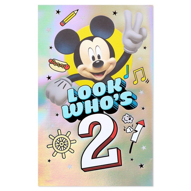 Let the good times roll and tell that 2-year-old kid they’re mousekerrific with this premium birthday card from American Greetings. Featuring Mickey Mouse and a big number 2 along with black foil accents and a super fun message, it’s sure to make any little Disney fan smile with delight. Envelope included.