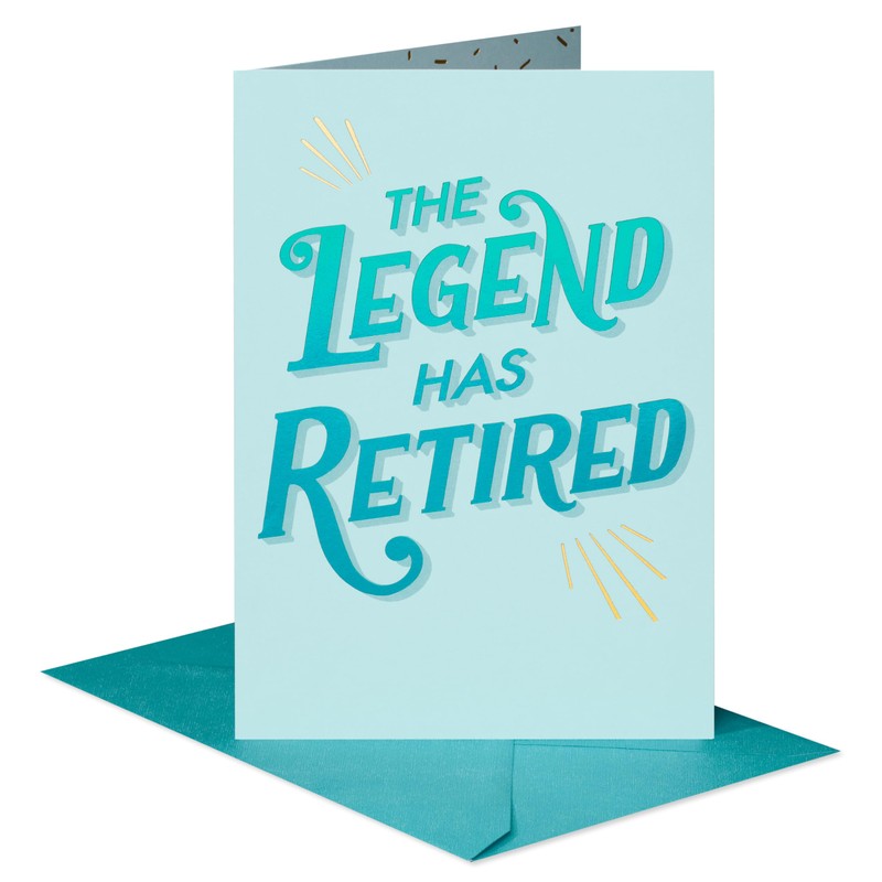 - This fun retirement card by American Greetings is perfect for anyone and features aqua and gold foils.