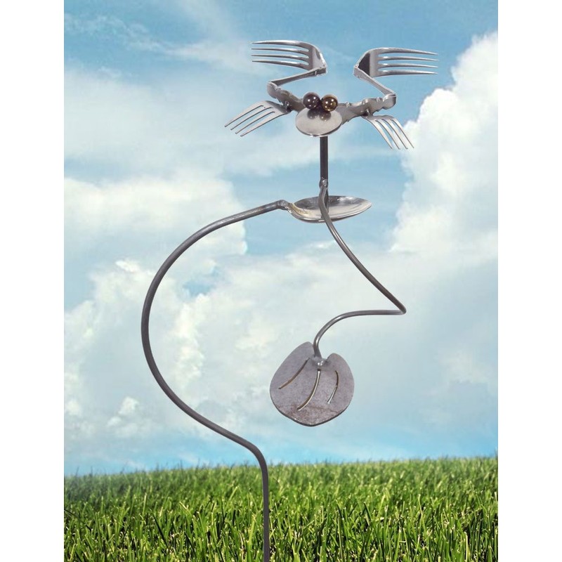 American Made Forky Frog Balancing Garden Stake and Upcycled Utensil Sculpture