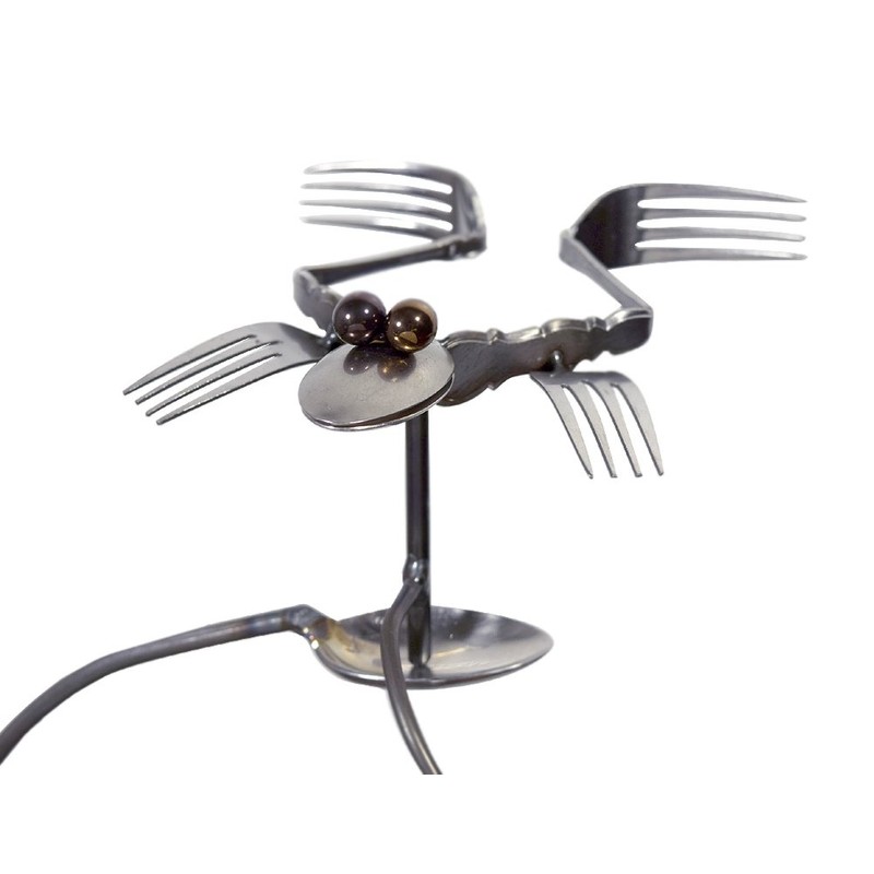 - A fusion of industrial intelligence with artistic vision, vintage forks and spoons take shape as a sweet little frog that gently bobs and rocks