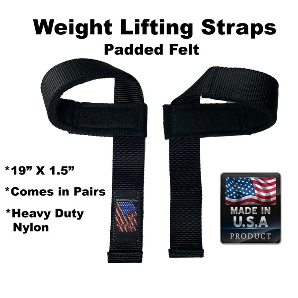 American Made Products Weight Lifting Straps Nylon with Felt Padding Support Bodybuilding MADE IN USA
