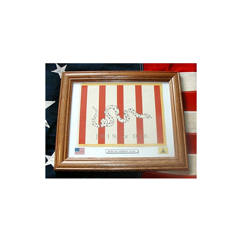 This is a framed Revolutionary War reproduction Flag. Many differant flags were used by the famous Sons of Liberty before and or during the Revolutionary War. The Rattlesnake image was inspired by both Benjamin Franklin and Paul Revere. This Flag is new and made of cotton muslin. It is in a 10" x 12" oak frame. I will not ship American history out of the United States.