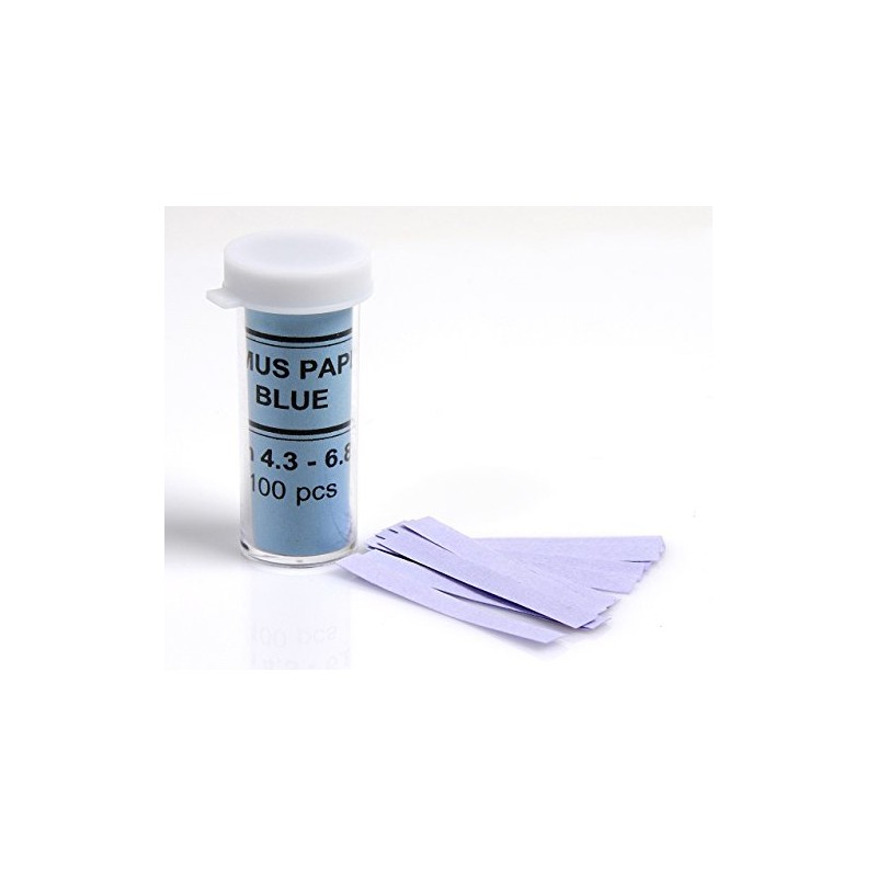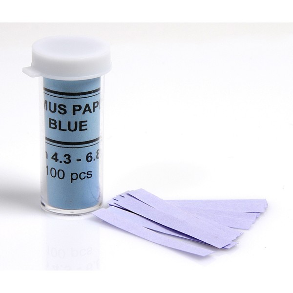 Blue Litmus Paper is a P.H. tester for Acid with pH between 4.3-6.8. 100 strips per vial. Blue litmus paper turns red or pink for acidic solutions (pH values lower than 7 (Neutral). This is used in many science projects. Each strip measures approx .25 inches x 1.75 inches.