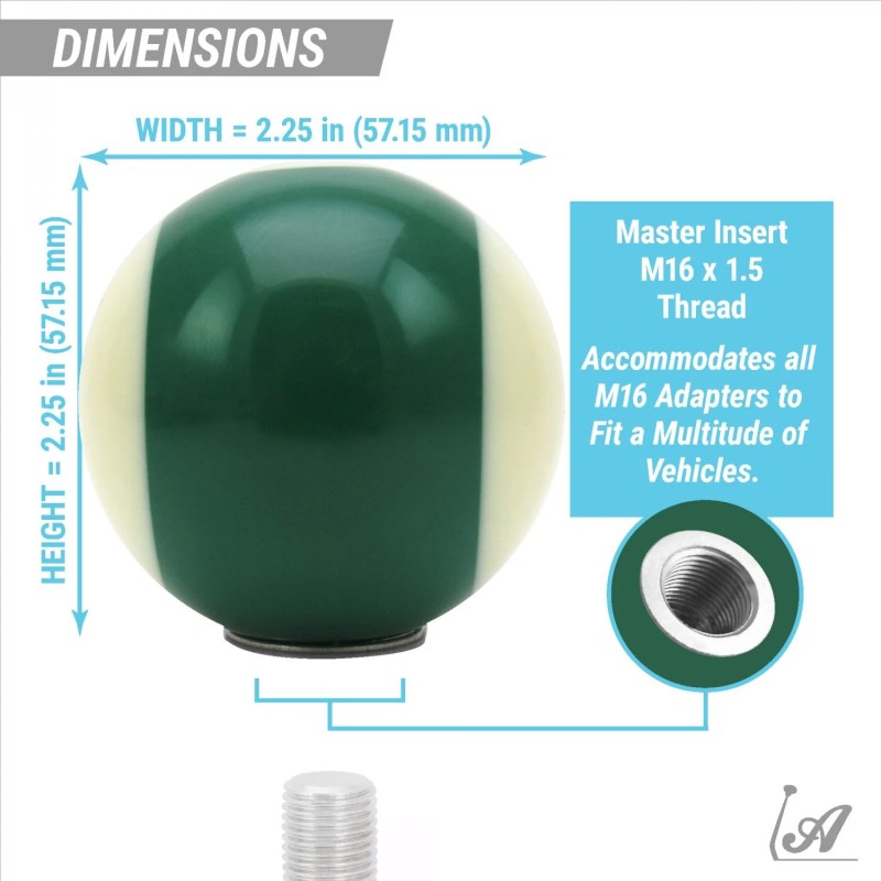 American Shifter Company Green Stripe Number 14 Billiard Pool Ball Custom Shift Knob - Steel 16mm Insert
