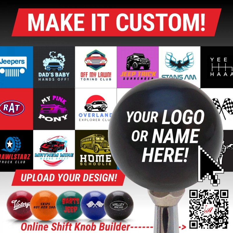 All Bank Shot series of Custom Shift Knobs can be custom etched to include your shift pattern, logo, or design of your choice. Please talk to an American Shifter sales rep for more details or visit our website.