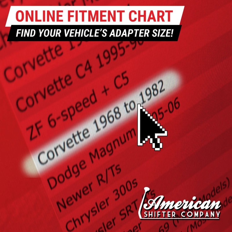 The American Shifter Company stocks a complete line of Custom Shift Knob adapters and is sure to have the correct one for your vehicle. Check out our online fitment chart to find your vehicle if you are unsure about your thread pitch.